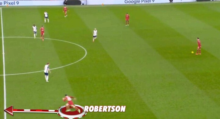 When Robertson makes these runs, it ends up helping Mohamed Salah and Luis Diaz to stay onside and creates a gap between midfield and defence.