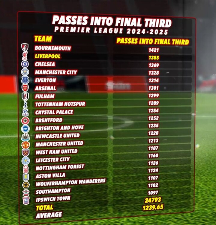 It is quite remarkable when you consider Liverpool rank second highest in the league for passes into the final third but third lowest for offside offences.