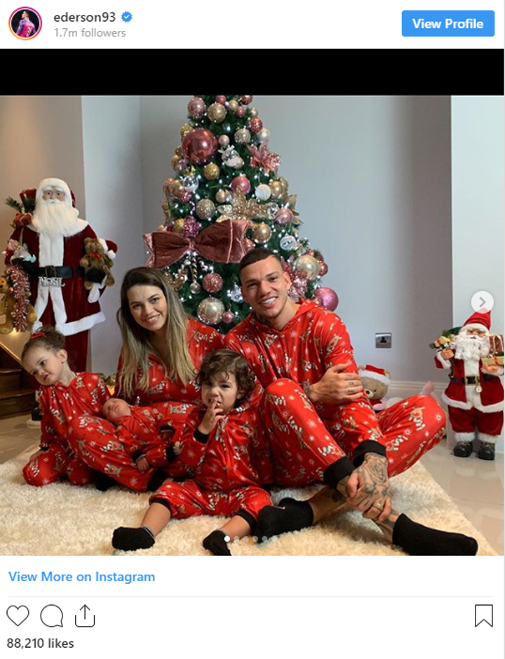 Goalkeeper Ederson gathered around the tree with his family to wish the world Merry Christmas!