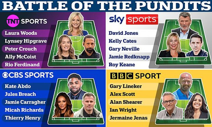 There is little change expected in terms of the punditry team on Sky Sports with Gary Neville and Jamie Carragher the main stars.