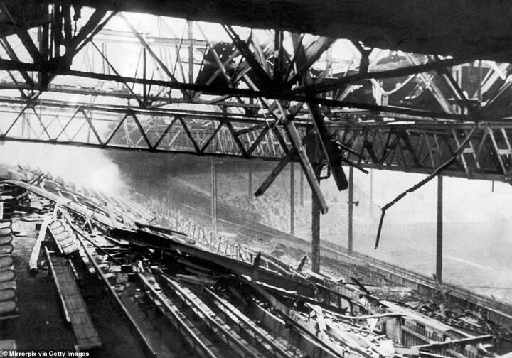However, Old Trafford sustained heavy damage during World War II when a bombing raid destroyed much of the South Stand forcing the club to temporarily move remove the debris and begin rebuilding in 1941. United would play their games at Manchester City's Maine Road while this work was done.