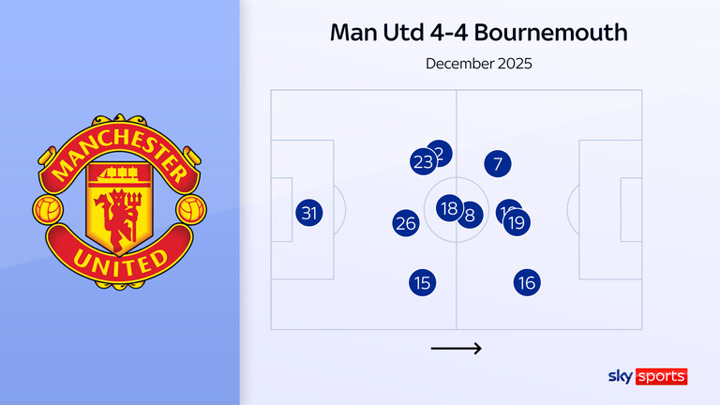 Man Utd 4-4 Bournemouth (4-2-4/4-2-2-2/4-4-2) - Dec 2025