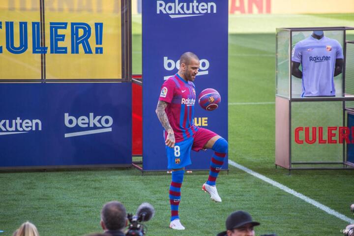 Dani Alves can't officially play for Barcelona until he is registered as a new signing in the January transfer window.