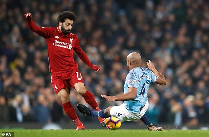 Kompany overstretched after John Stones misplaced a simple pass in midfield before the break, clattering into Salah as the Liverpool forward bore down on goal.
