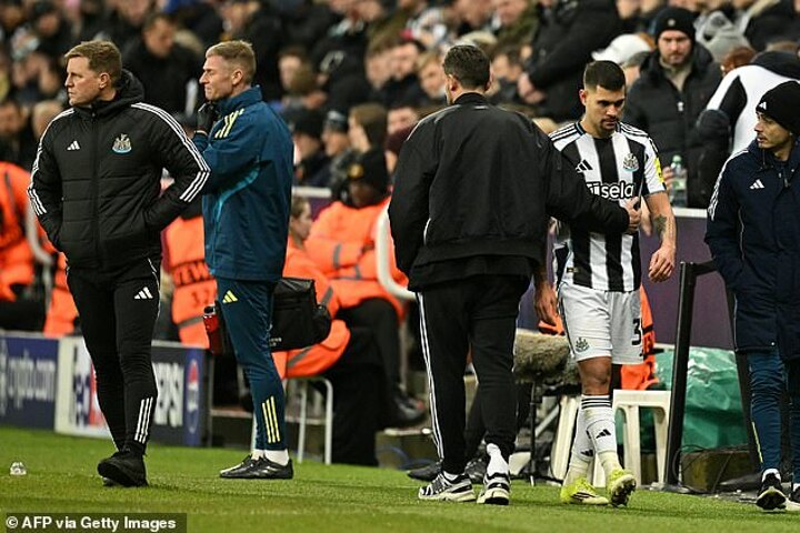 'He's a little bit sore and there's a little bit of swelling around his ankle,' Newcastle boss Howe said after the match. 'We hope it's not serious but it's difficult to know.