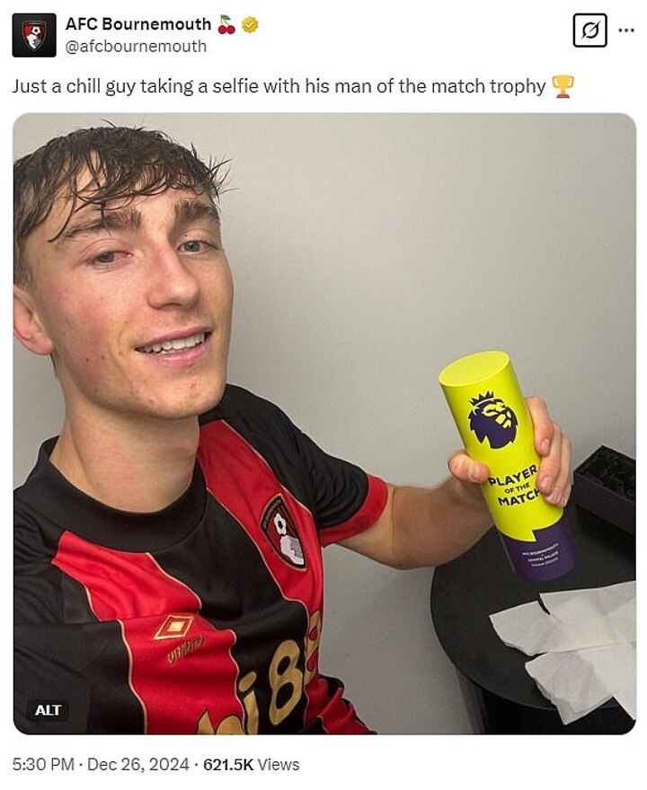 The host went on to reference a photograph of Huijsen holding up his Player of the Match award after guiding Bournemouth to a 3-0 win over Manchester United in December.