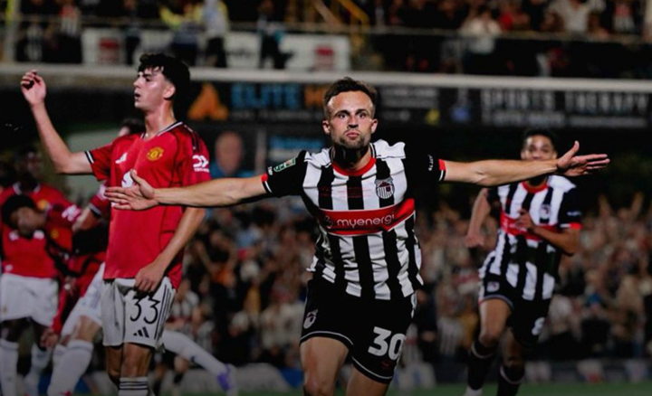 The goal doubled the advantage given to Grimsby by Charles Vernam, who beat Onana with a low shot after Kieran Green took possession away from Amad Diallo and Manuel Ugarte, allowing Darragh Burns to deliver the far-post cross.