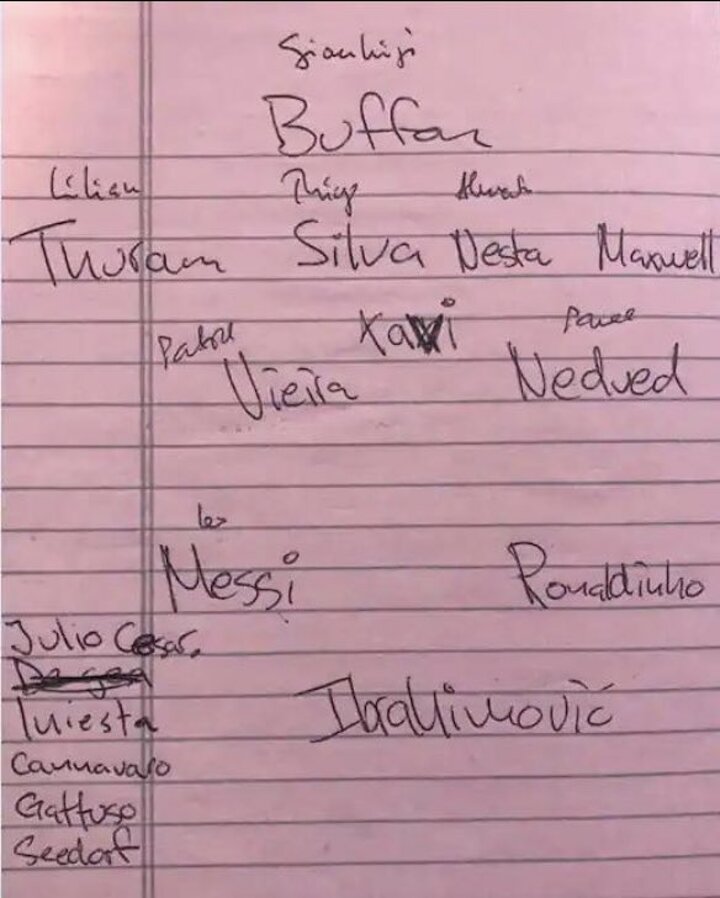 Lilian Thuram, Thiago Silva, Alessandro Nesta, Patrick Vieira, Pavel Neved and Brazilian defender Maxwell were the other stars named in the first team.