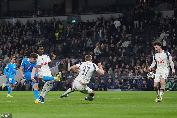 But 15 minutes from the end, Atletico finally ended Spurs’ comeback hopes. Alvarez turned provider this time, swinging in a corner to the near post, where it was met by David Hancko, who glanced it past Vicario from close range.