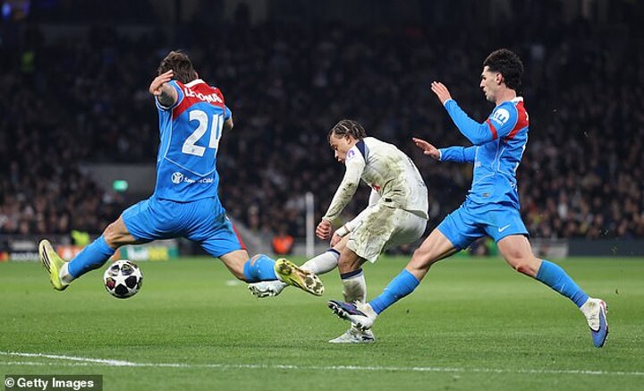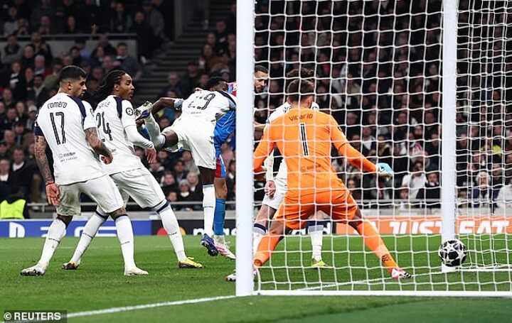 Spurs should have added a second goal seven minutes later. Archie Gray burst forward from midfield and the ball was worked quickly to Kolo Muani and then to Xavi Simons who swept it into the path of Tel. Tel might have crossed to Gray but he tried to clip the ball past Musso and the goalkeeper blocked it.