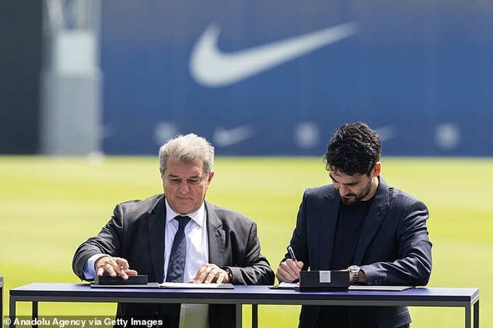 Ilkay Gundogan has been unveiled as a Barcelona player, inking his new contract with the club during a ceremony today that also saw him enjoy a 'kick-about' with club president Joan Laporta.