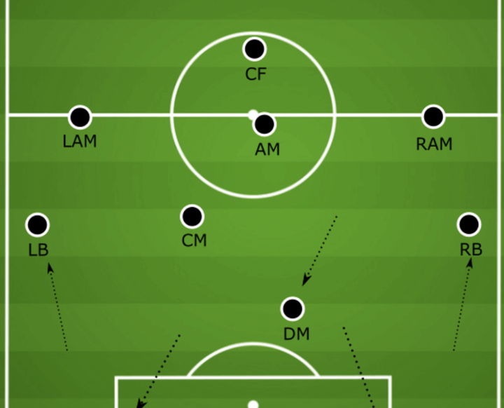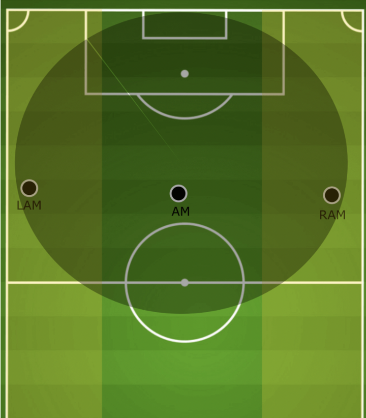 The players that are in the midfield area must be conditioned for endurance, electric speed, and technically gifted. That will allow them to go engage 1-vs-1 situations and overcome their opponents. Specifically, the attacking midfielder must be unpredictable with the ball on his feet. He must be able to penetrate the opposition’s defensive line. Moreover, he must know to take advantage of the free space and either drive the ball in there or make a pass. Overall, the central attacking midfielder or number ’10’ must be a continuous threat for the opposition with and without the ball around the box. Except the above, the number ’10’ must be able to defend, as modern football demands from him to participate in the game when his team does not have the ball, as well. The wide attacking midfielders have to be exceptional dribblers and unpredictable. They must have the ability to deliver the ball into the box, and be good at combination play. They have to read the game and possible scenarios and take advantage of possible weaknesses of the opponent and exploit them. Without the ball, these players have to support the full-backs defensively. That is the reason why they have to be in excellent physical condition. A crucial factor for the success of this formation has to do with the partnership between the full-backs and the wide attacking midfielders when defending and attacking. Below there is an image with the areas that the players are moving during a game according to their positions.