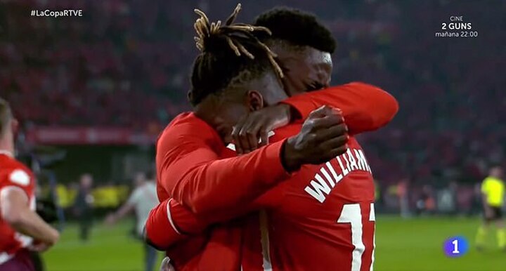 Inaki Williams and Nico Williams were seen having an emotional embrace after Athletic Bilbao's dramatic Copa del Rey final win on Saturday night.