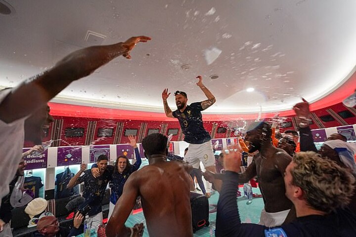 The France players were clearly delighted with the achievement of reaching the final in Qatar as pictures have since emerged of jubilant celebrations inside the changing room from Wednesday night.