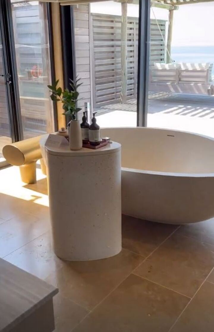 After getting settled in Aine got into her bikini to enjoy a luxurious day lounging by the sea at the luxurious resort.