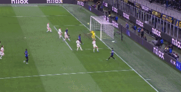 Back came Inter as they looked to crank up the pressure, but Federico Dimarco’s cross into the six-yard box could not be turned home by Thuram.