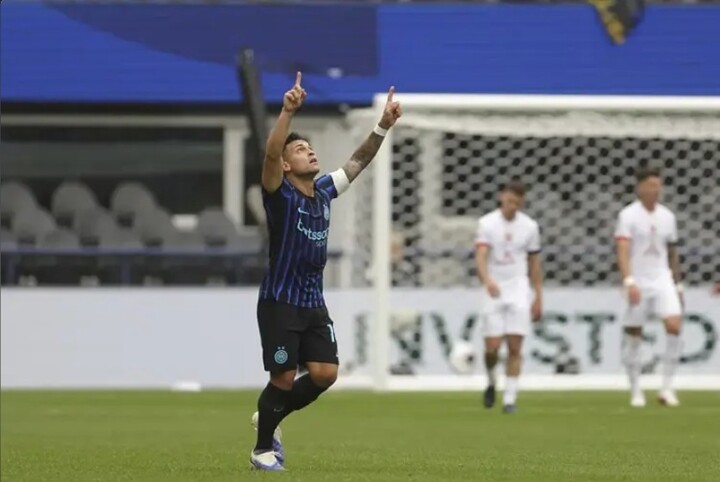 Inter almost drew level seven minutes after falling behind when Martinez rose highest to meet Kristjan Asllani's cross, but his effort cannoned against the crossbar.