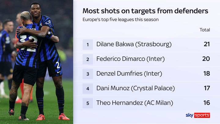 It is why Dumfries ended up with two goals and three assists across the two Barcelona legs. Dimarco, meanwhile, has created the highest number of big chances out of any defender in Europe's top five leagues.