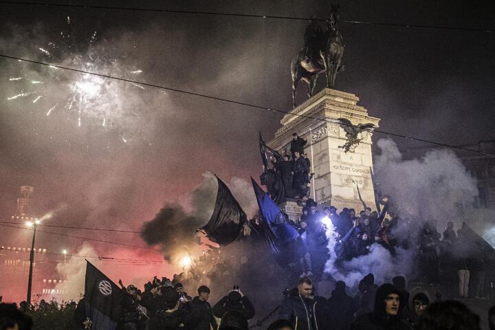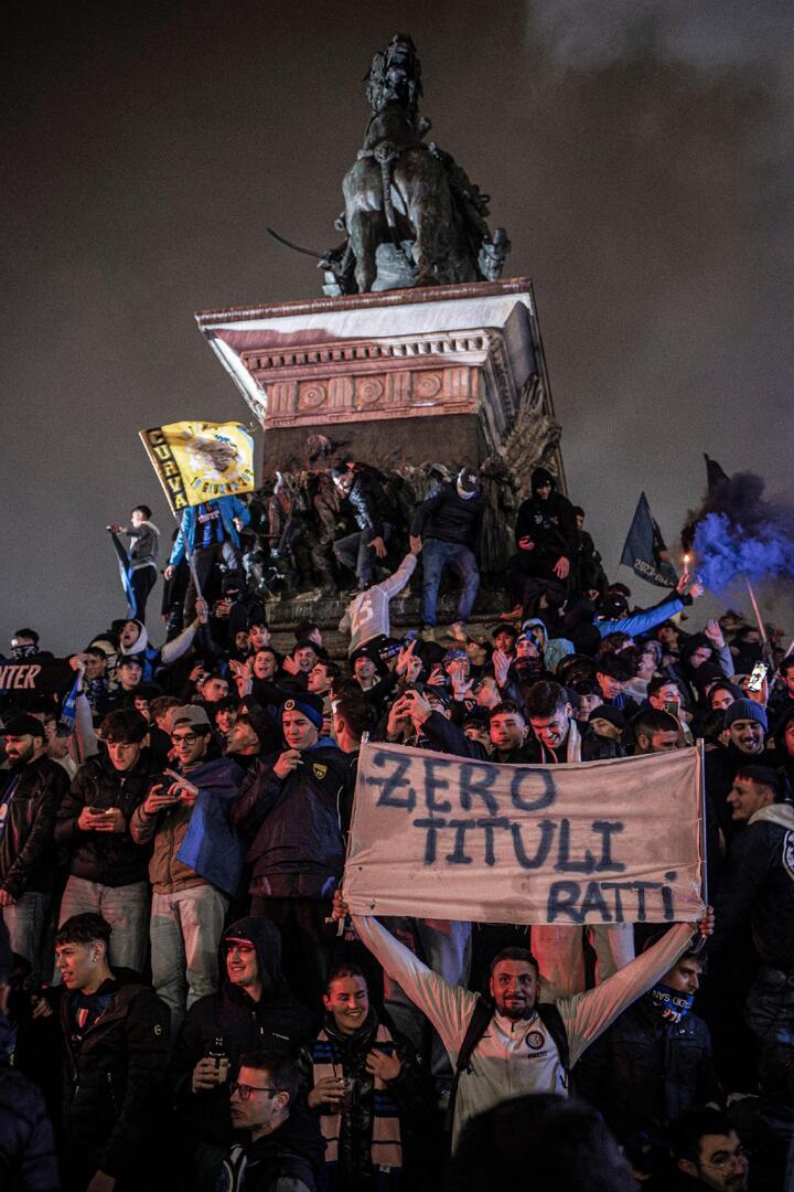 As the night went on, Inter fans gathered outside Milan’s Duomo Cathedral in the main city square.
