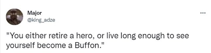 While one joked: 'You either retire a hero, or live long enough to see yourself become a Buffon.'