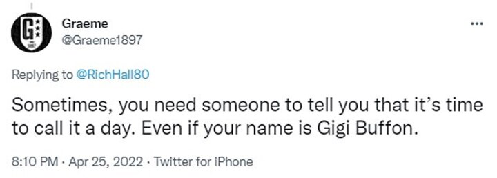 Someone else said: 'Sometimes, you need someone to tell you that it's time to call it a day. Even if your name is Gigi Buffon.'