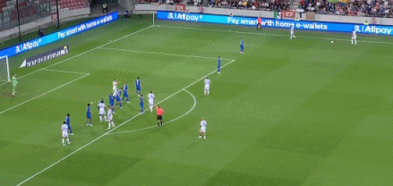 The Azzurri took the lead for the first time in this match and, just like against Estonia, Retegui shone with a cheeky back-heel flick assist. This time his back was to goal as he flicked on a long throw-in for Politano to come sliding in from six yards with the angled drive.