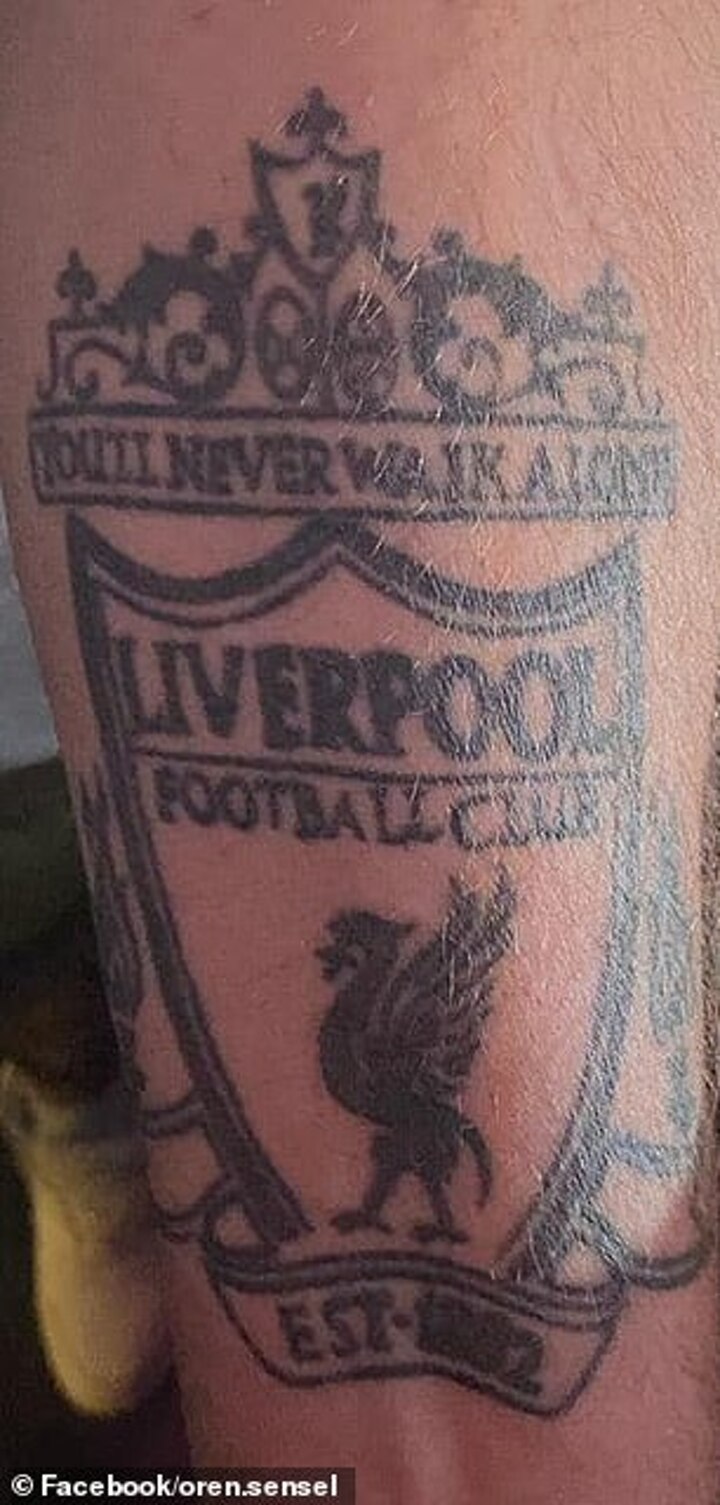 He has taken drastic action to prove his point, blacking out the club's crest on his arm tattoo and replacing it with the Star of David, while also crossing out the 'Never' from Liverpool's iconic motto 'You'll Never Walk Alone'.