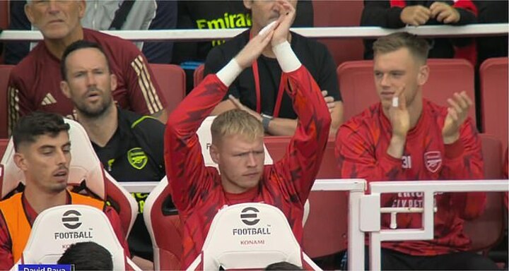 The cameras quickly panned around to focus on Ramsdale's reaction on the bench, and the England international was seen clapping enthusiastically with his hands above his head.