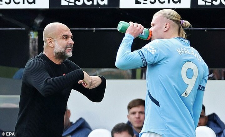Guardiola, who could be seen laughing in the background, pointed to the success of Erling Haaland, who is City's current No 9 and has scored 101 goals in 108 games for the club.