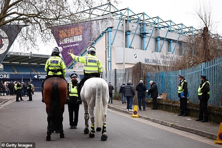Not that there were any problems: even at Millwall, football has moved on since the 70s. But this still felt deeply dystopian: for their own safety, away fans walk to the ground through a long wire mesh cage that seems to have no end.