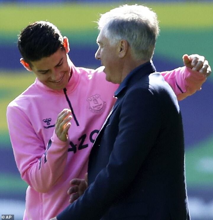 New Everton signing James Rodriguez joined in the celebrations after his side cruised past West Brom on Saturday by accepting a gift from an adoring fan.
