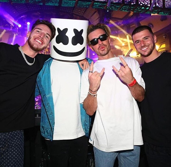 Grealish was also joined by his friend, and West Ham star, Declan Rice at one stage.