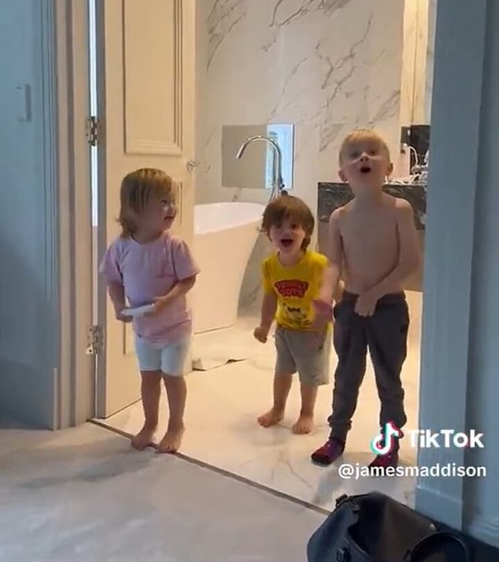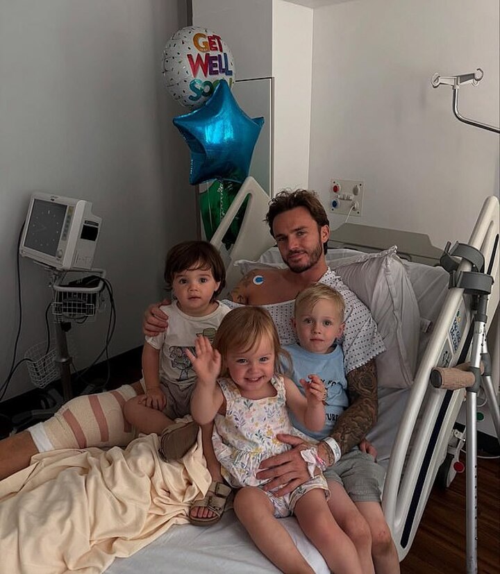 James Maddison shared an adorable moment with his three Tottenham-supporting children as he recovers from an ACL injury that will sideline him for most of the campaign.