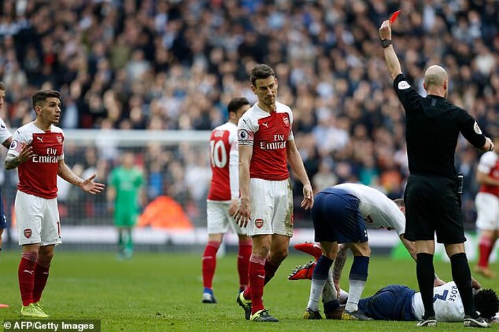 The Uruguyan midfielder came off the bench for Arsenal with the score level at 1-1 and he committed to a challenge on Tottenham's Danny Rose in the closing stages as the Gunners sought a winner.