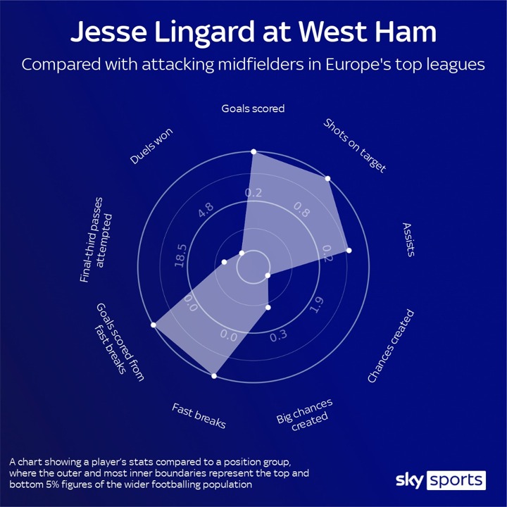 His efforts are accountable, too. Premier League tracking data places Lingard 14th in the league for sprints attempted since his West Ham debut - and he was ineligible to play against his parent club for one league fixture.