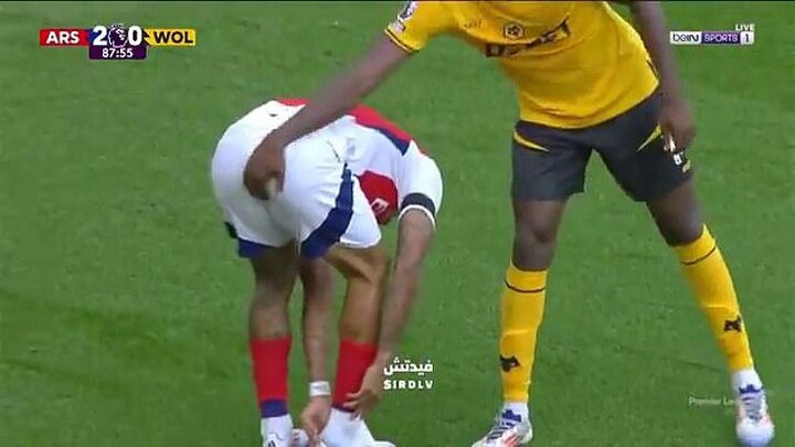 Footage showed Jesus bending over to seemingly sort out his right boot, with Mosquera bizarrely stopping in his tracks as he walked past the Brazilian.