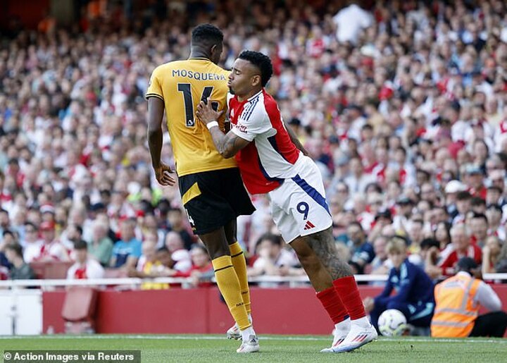It came after a break in play, with TV footage showing Mosquera seemingly grabbing the buttocks of Jesus, who ended up lashing out in response and picking up a yellow card.
