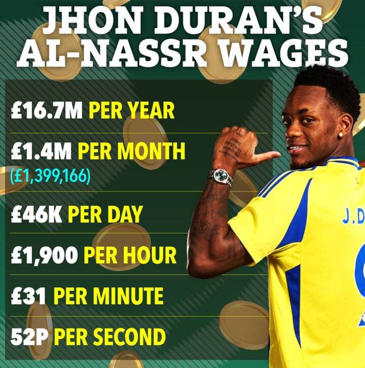 The now former Villa striker now also earns £31 a minute and 52 pence per second.