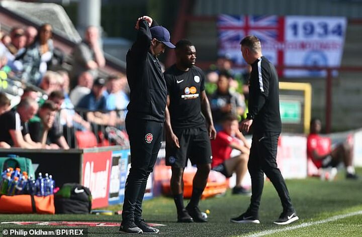 Barton has been able to continue his managerial work while the investigation is ongoing and was pictured issuing orders to his players during the game at Highbury Stadium on Good Friday.