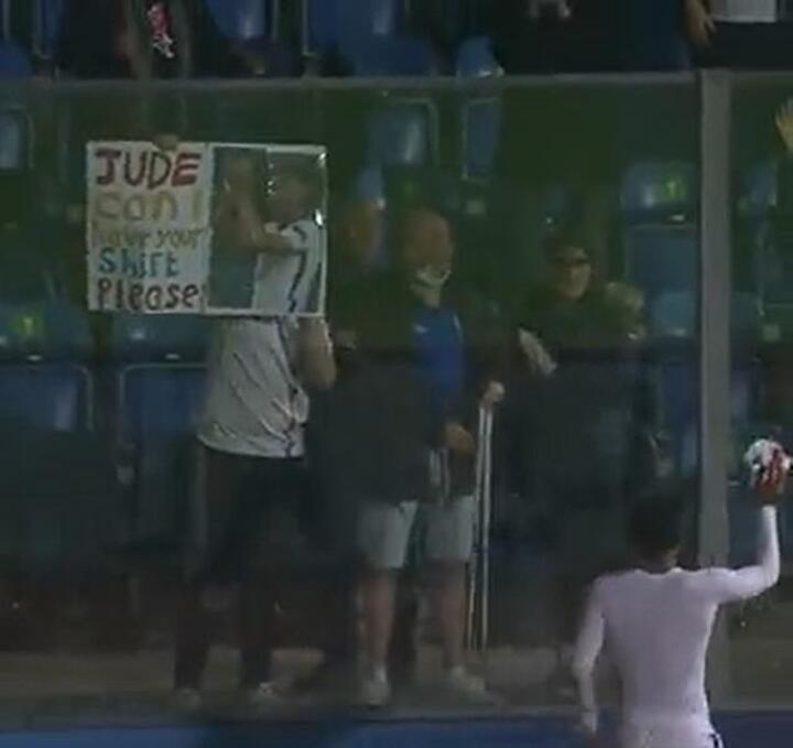 Bellingham came through the ranks at Birmingham and retains a soft spot for the Blues, which made him oblivious to the young fan a few seats down who was holding a poster asking for the teenager's England shirt.