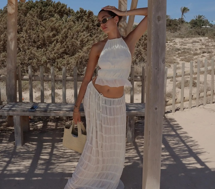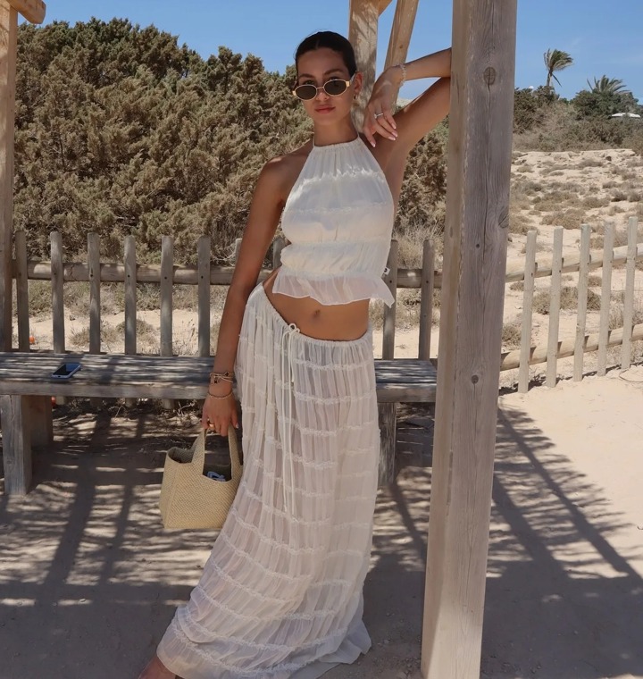 Sophia also shared images of her in a white top and dress as she posed on the beach.