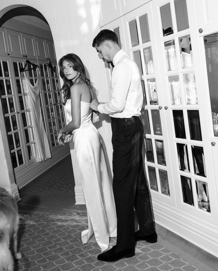 While Sophia dazzled in a long white dress as she embraced her footie husband.