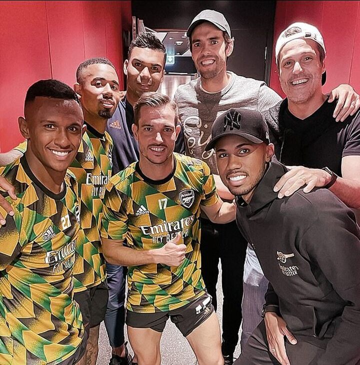 Kaka, who was accompanied by his former international team-mate Julio Cesar, posed for Instagram pictures with Cristiano Ronaldo, Antony and Arsenal's Brazilian contingent after United's 3-1 win.