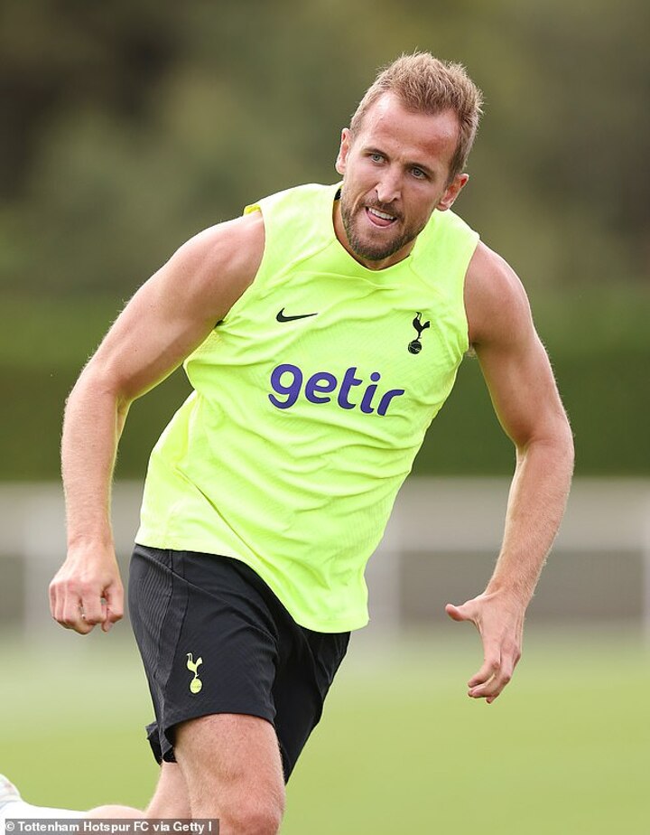 Harry Kane has been photographed in Tottenham training appearing to have bulked up after a rigorous pre-season under manager Antonio Conte.