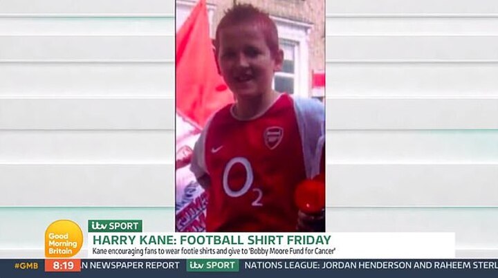 Harry Kane was given a reminder of his Arsenal roots on Good Morning Britain as Piers Morgan brought out an old photo of the Tottenham striker in his rivals' colours.
