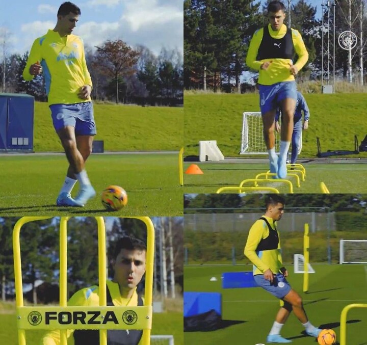 Rodri is back on the training pitch with the football