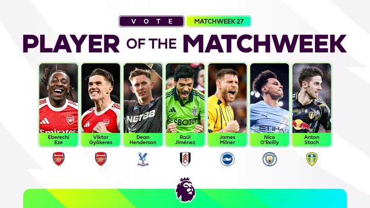The best player nominees of EPL Matchweek 27: Eze and Gyökeres included
