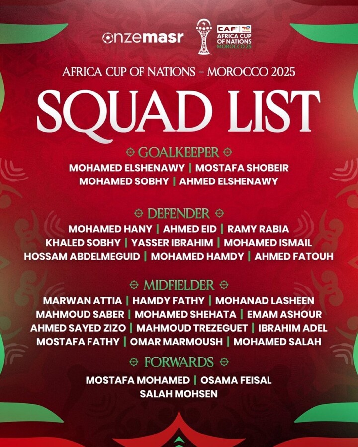 On 11 December, Egypt's national team has announced its squad for the Africa Cup of Nations.
