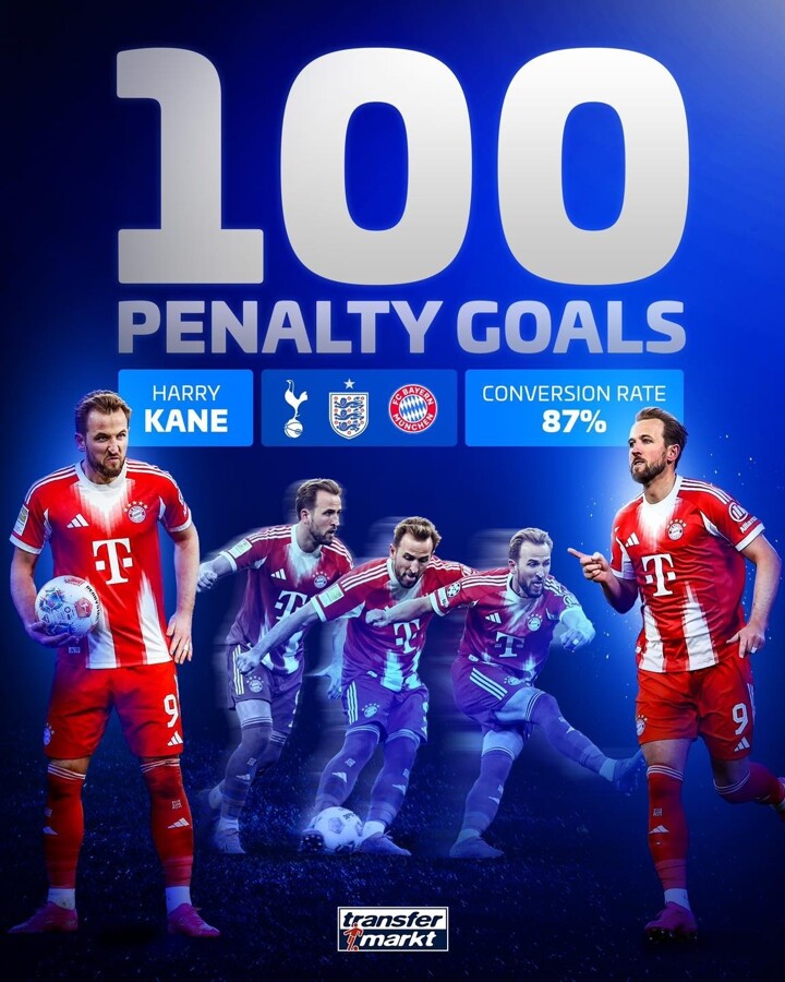 Transfermarkt: Kane has scored 100 penalty goals with an 87% conversion rate