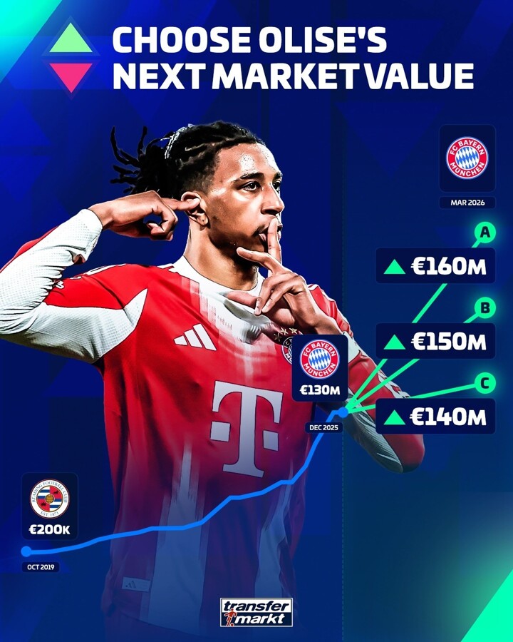 On March 20th, Transfermarkt will update the market values of Bundesliga players. Prior to this, Transfermarkt predicted the market value of Bayern Munich star Olise.